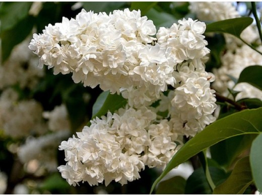 Сирень обыкновенная "Мадам Шатене" эффектный листопадный кустарник, с обильным белоснежным цветением и нежным ароматом. Данный сорт великолепно выглядит в качестве солитера, а также в смешанных посадках с другими сортами сиреней и декоративными кустарниками.