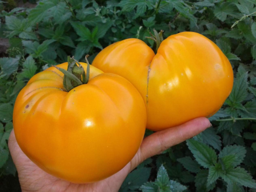 Относящийся к детерминантному типу: масса каждого томата варьируется от 400 до 600 граммов, но порой встречаются и настоящие гиганты, достигающие 1000 граммов.
