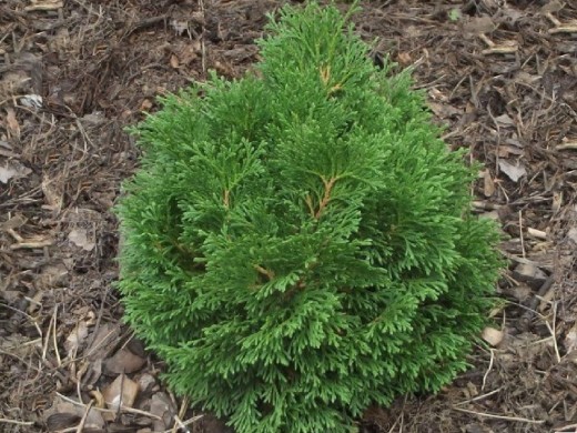 Туя складчатая "Little Boy" миниатюрный и пушистый, изумрудно-зелёный шарик, который украсит любой сад, каменистый или японский.