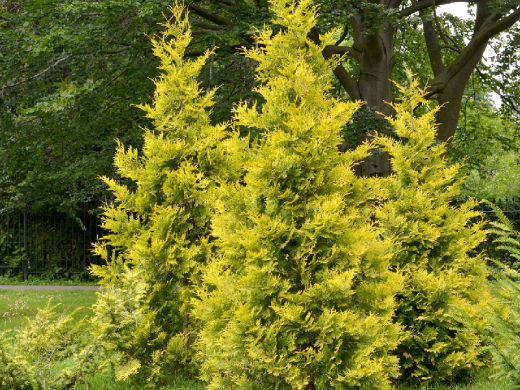 Туя западная «Salland»- конусовидный, компактный и плотный сорт. Туи с коническим габитусом и интенсивным желтым цветом молодых приростов, придающий всему растению очень привлекательный внешний вид. Сорт идеально подходит для живой изгороди, образует ровный, не требующий ухода ряд. Золотистая, светлая стена из кустов туи 'Salland' является красивым фоном для карликовых растений с зелеными и бордовыми листьями, дополнительно создавая защиту от ветра.