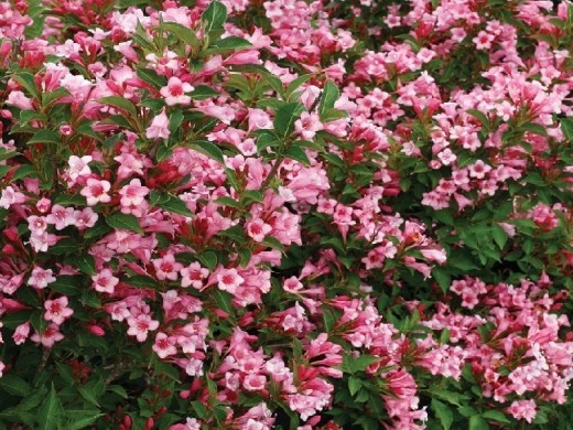 Вейгела цветущая "Pink Poppet" - низкорослый кустарник с нежно-розовыми цветами. Великолепно выглядит в японских и каменистых садах, применяется для обозначения границ в альпийских горках или как цветовой акцент, хорошо сочетается с цветущими многолетниками.