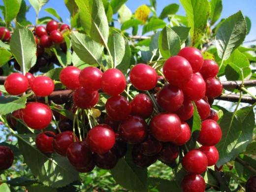 Плоды у вишни мелкие, от 2,5 до 3 граммов. Округлой формы, темно-красного цвета. Причем красная не только кожица, но и мякоть. Косточка оделяется средне, отрыв сухой.
