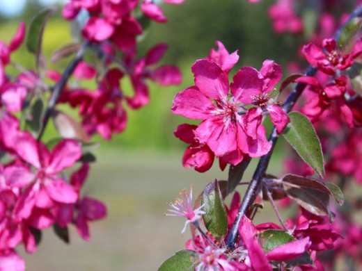 Яблоня декоративная "Crimson Brilliant" - дерево с ажурной вертикальной кроной, особенно привлекательно выглядит во время цветения. Подходит для озеленения садов и парков.