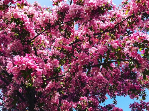 Яблоня декоративная "Макамик" - прекрасный сорт с очаровательным, красочным цветением, идеальный выбор для создания живописного ландшафта. Рекомендуется для садов, парков, скверов.