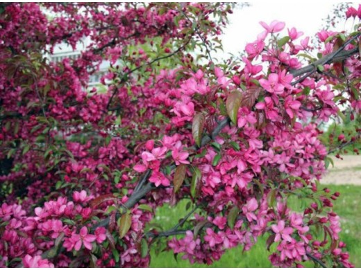 Яблоня декоративная "Ola"- быстрорастущее, скороплодное дерево. "Ola" особенна хороша во время цветения, когда крона дерева превращается в большое розовое облако. Подходит для озеленения садов и парков.