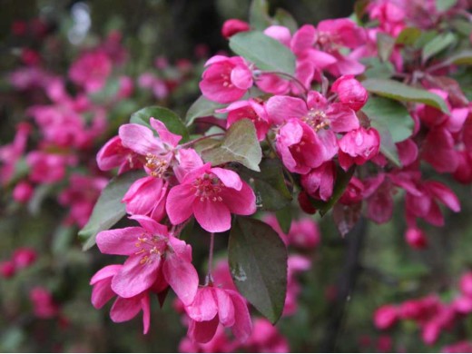 "Profusion"- оригинальный сорт декоративных яблонь, дерево с широкой кроной до 6 м высотой, диаметр кроны 4-5 м. Молодые листья темно-красные, летом зеленые с коричневым оттенком, блестящие, осенью янтарно-коричневые. Цветет в мае, обильно. Бутоны крупные красные, цветки многочисленные крупные, до 3,5-4 см, сиренево- и розово-красные, с приятным ароматом. Плоды многочисленные, шаровидные, красные, мелкие 1,5 см, могут сохранятся зимой.