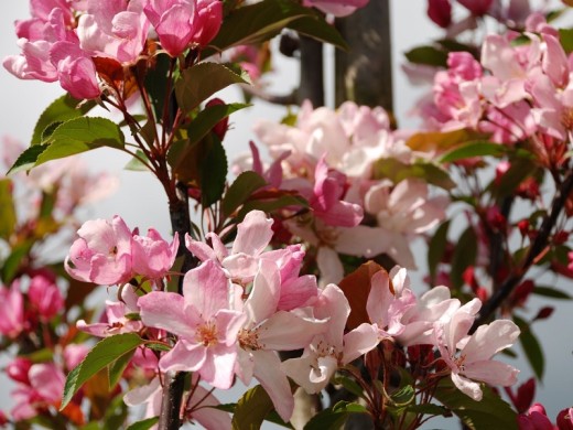 Яблоня декоративная "Red Obelisk" очень эффектно выглядит на протяжении всего сезона: весной - бело-розовое облако цветов, осенью и зимой декоративности добавляют маленькие яркие яблочки.