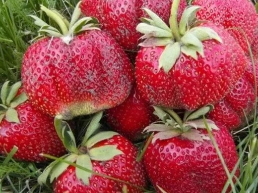 Листья тройчатые, темно-зеленые, глянцевые, приподняты над землей, создают плотную розетку. Цветки среднего размера, белые, диаметром 2–3 см, расположены на крепких цветоносах выше уровня листвы. Ягоды крупные,30 г. ,ярко-красные, блестящие, с десертным сладким вкусом и легким земляничным ароматом.